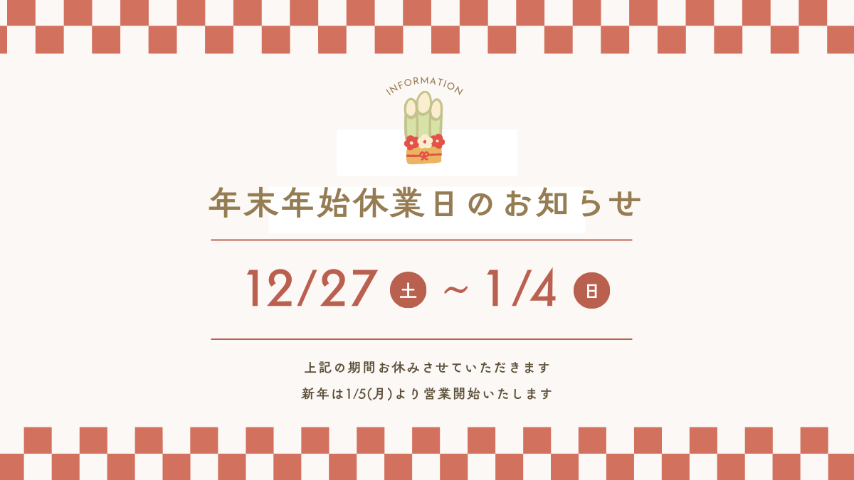 【休業期間】12月27日(土)〜1月4日(日)