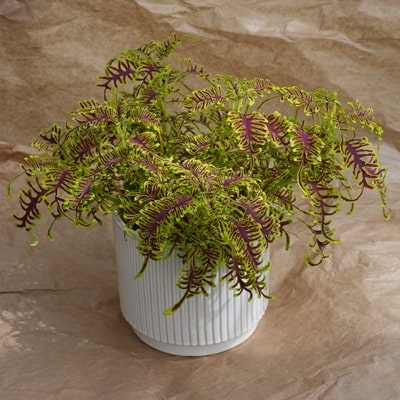 光を受けて輪郭がふわりと浮かび上がる、ライムグリーンの縁取り。コリウス ライムエッジは、葉そのものを主役にしたガーデンづくりに最適なリーフプランツです。暑さに強く、半日陰でも冴えた色調を保つため、夏場の花が少ない時季にも空間を明るく演出。株は自然にまとまり、過度な徒長を抑えながら、こんもりとボリュームよく育ちます。寄せ植えではダークカラーや紫系の葉・花と合わせるとコントラストが際立ち、花壇ではボーダー使いでリズム感のある植栽に。初級者にも扱いやすい育てやすい品種です。