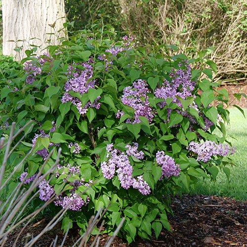 従来のライラックと比べて、樹高約120〜150cmとコンパクトに収まる樹形は、小さな庭やコンテナ栽培にも最適。アップライトで端正にまとまるため、狭いスペースでも美しい景観を作り出せます。