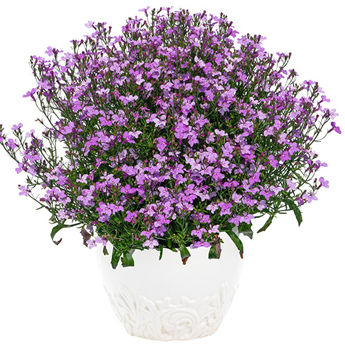 薄紫のふわりとした優しい花がふわふわと舞うロベリア スカイフォール ライラックミスト。ロベリア スカイフォールシリーズに新色がプラスされました。